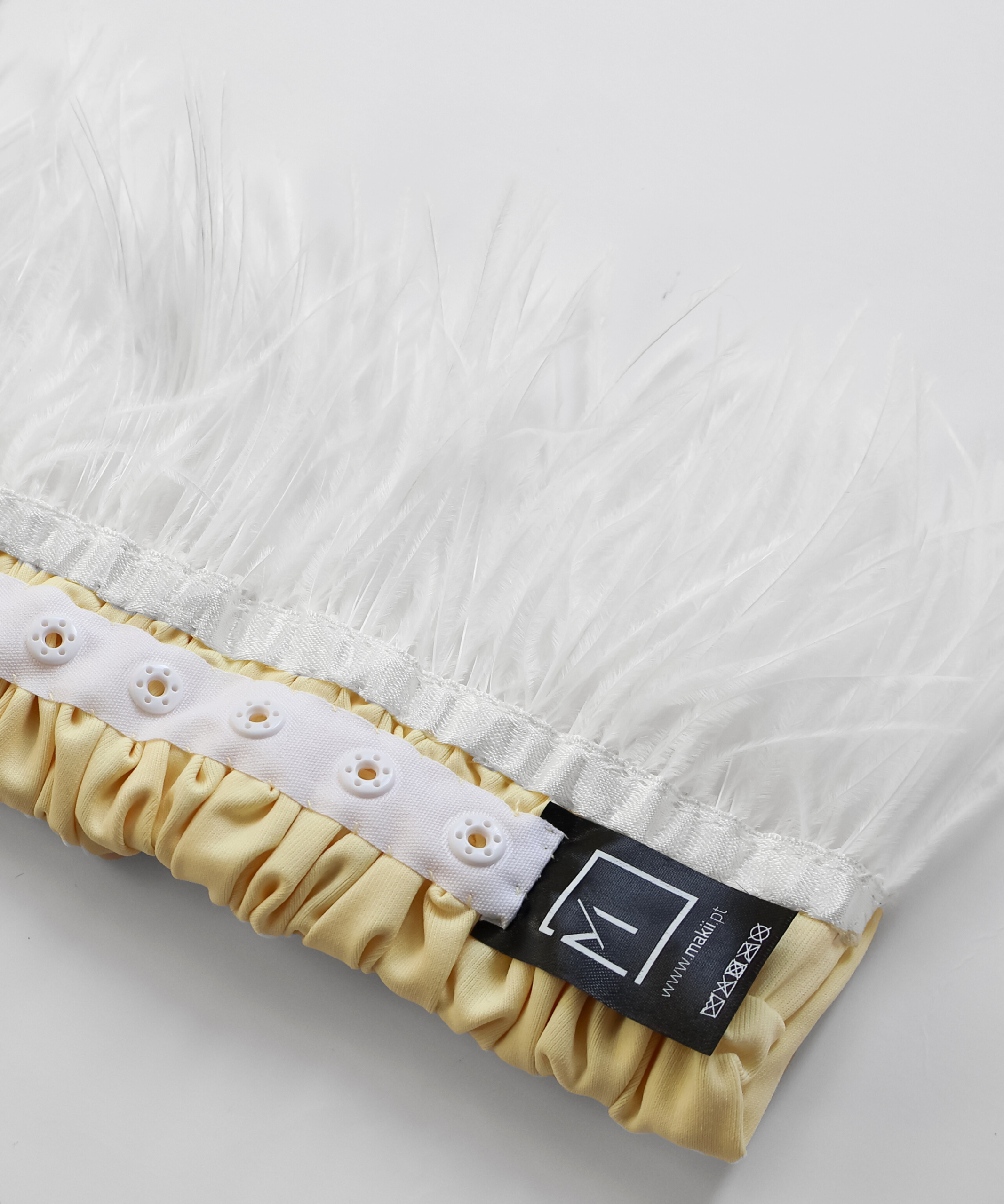 Our Butter Feather creation is handmade with quality lycra and enriched with a touch of feathers. Each piece is an exclusive detail that transforms any design.