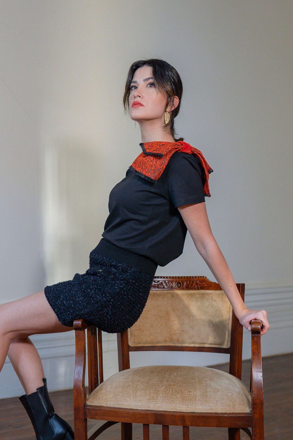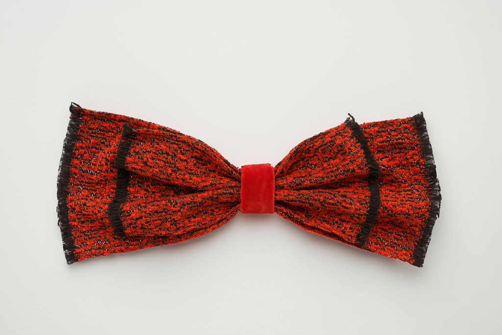 The glamorous trend  gave rise to our bow with frayed ends and velvet detailing.