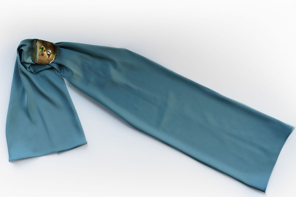 Has 10 press studs hidden in the click that ajust to the left shoulder of the T-shirt